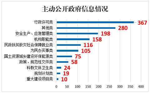 ?。ǘ┮郎暾埿畔⒐_情況。2019年,我市共受理依申請公開82件,同比增長95.2%,辦結(jié)及時率100%,其中市政府辦公室受理19件,其他公開責任單位受理63件。受理方式主要包括網(wǎng)絡申請42件、信函申請35件、當面申請5件,主要涉及安征遷、案卷材料等方面,其中“予以公開”32件,“部分公開”13件,“不予公開”11件,“無法提供”25件,“不予處理”1件?!安挥韫_”的政府信息主要是涉及其他法律行政法規(guī)禁止公開、保護第三方合法權(quán)益等。2019年,市公安局、住房和城鄉(xiāng)建設局因政府信息公開被申請行政復議,共2件,尚未審結(jié);市住房和城鄉(xiāng)建設局因政府信息公開被提起行政訴訟1件,后原告撤回起訴。
