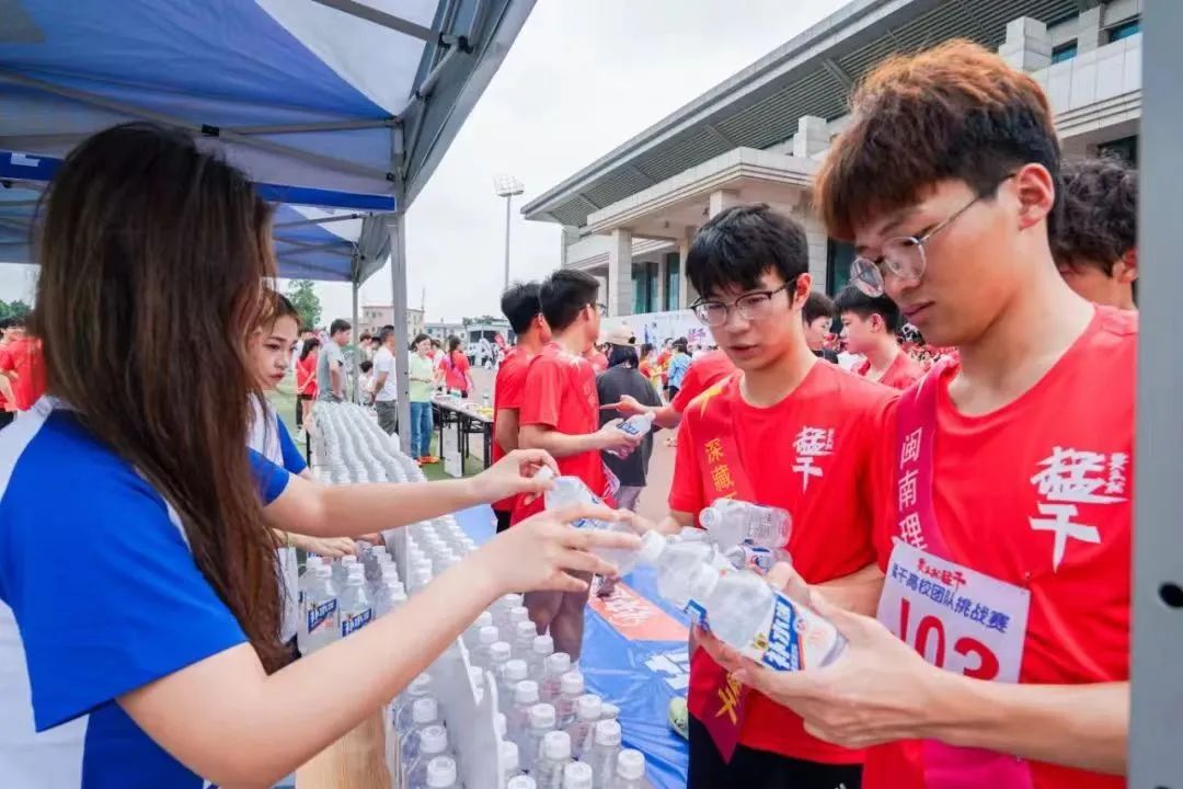 本次團(tuán)隊(duì)挑戰(zhàn)賽每隊(duì)由十名運(yùn)動(dòng)員組成,每名運(yùn)動(dòng)員依次交接完成2.1km,合計(jì)完成21km,用時(shí)最短的三支隊(duì)伍將獲得競(jìng)速獎(jiǎng)。賽事現(xiàn)場(chǎng),仁德醫(yī)院派遣醫(yī)護(hù)人員及救護(hù)車(chē)輛為賽事保駕護(hù)航。隨著發(fā)令槍響,每支隊(duì)伍的首名運(yùn)動(dòng)員同時(shí)出發(fā),在美麗的校園賽道上展開(kāi)激烈角逐,最終來(lái)自閩南理工學(xué)院、泉州海洋職業(yè)學(xué)院和石獅永寧中學(xué)的隊(duì)伍分獲前三名。團(tuán)市委、市文體旅游局、閩南理工學(xué)院及各贊助商領(lǐng)導(dǎo)出席活動(dòng),為賽事起跑鳴槍?zhuān)楂@獎(jiǎng)隊(duì)伍頒獎(jiǎng)。